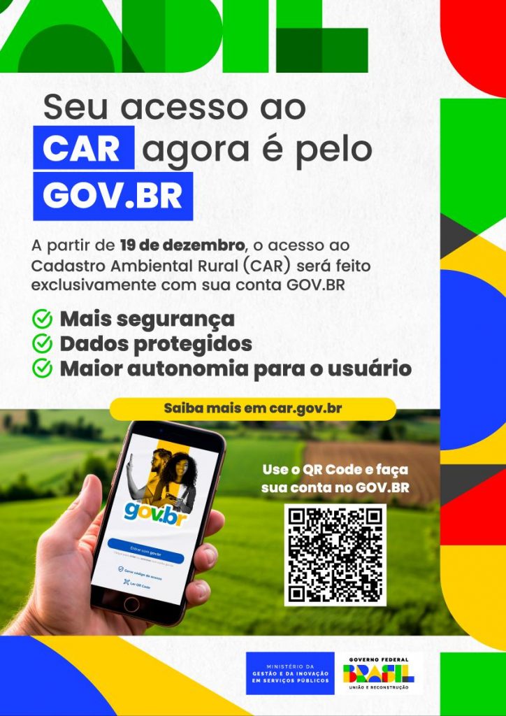 O acesso ao sistema do CAR, registro obrigatório para todas as propriedades rurais no Brasil, passará a ser realizado por meio da conta GOV.BR, exigindo nível bronze para efetuar o login.