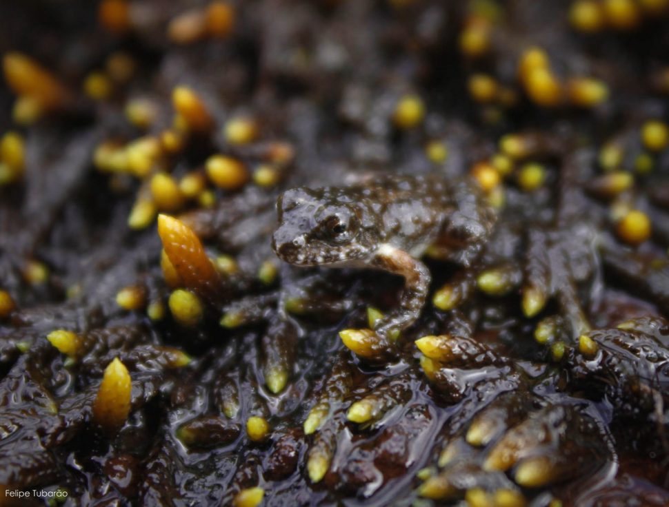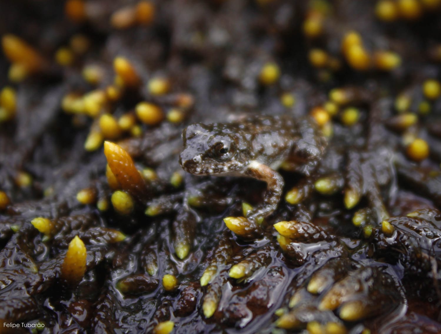 Ameaçado de extinção, endêmico da Mata Atlântica e com ocorrência restrita às serras do Rio de Janeiro, o anfíbio da foto é da espécie Cycloramphus brasiliensis. A rãzinha foi registrada pela primeira vez, há cerca de quatro meses, no Monumento Natural Estadual da Serra da Maria Comprida, unidade de conservação administrada pelo Instituto Estadual do Ambiente (Inea) e localizada em Petrópolis. A espécie foi fotografada pelo guarda-parque do Inea, Felipe Tubarão, ao percorrer uma trilha que leva a um dos cumes da unidade de conservação, a 1.690 metros de altitude. A rãzinha foi encontrada em uma rocha, próxima a um riacho.