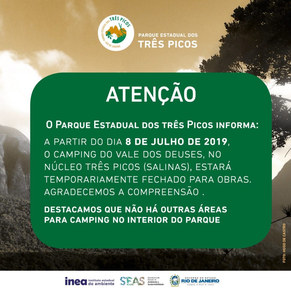 Camping Vale dos Deuses, no Parque Estadual Três Picos, ficará fechado a partir desta segunda-feira (08)