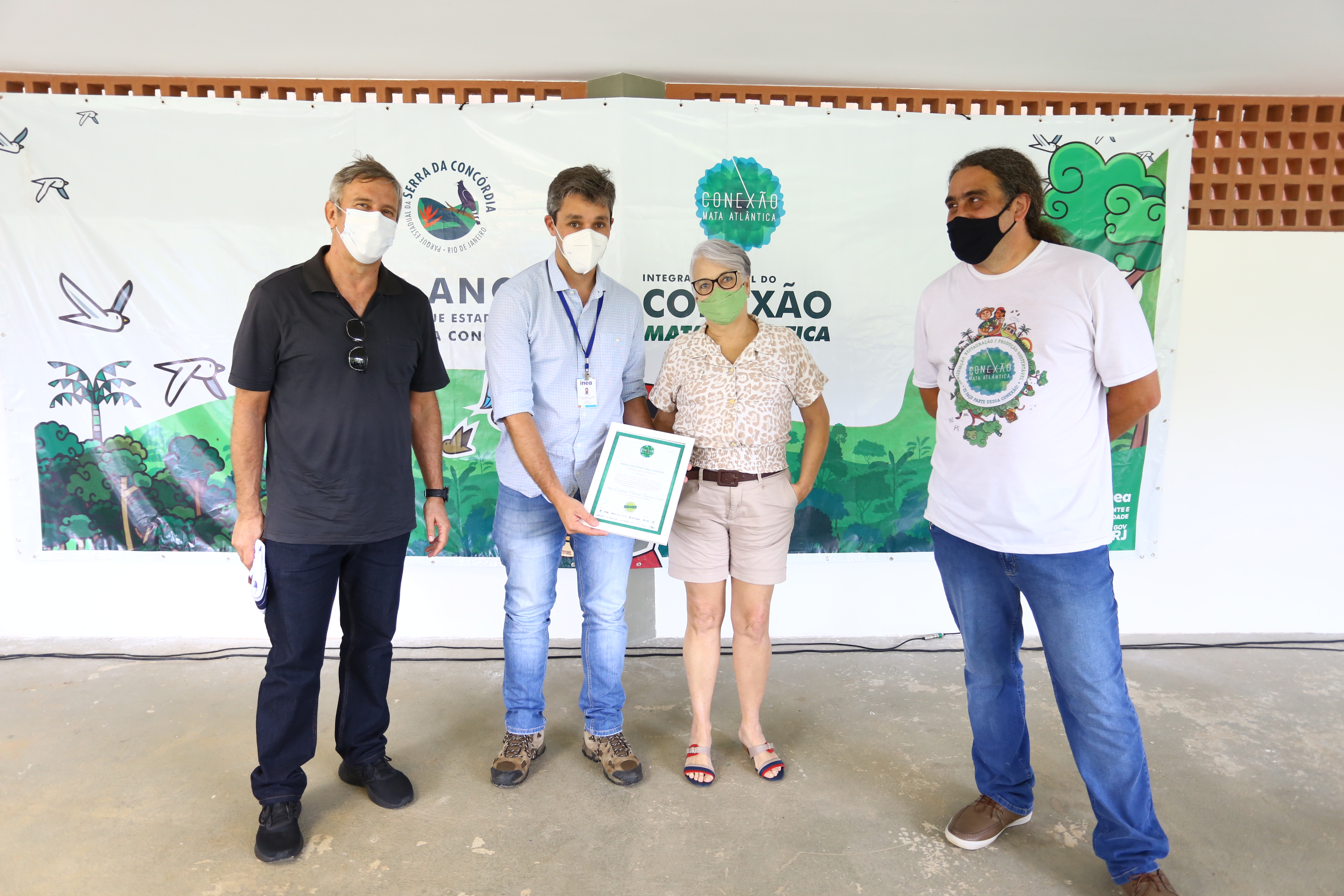 Agentes ambientais do parque e produtores rurais do projeto Conexão Mata Atlântica também receberam certificados em reconhecimento aos serviços prestados. Os presentes também participaram de mutirão para o plantio de mudas nativas da Mata Atlântica em uma área que está sendo restaurada dentro da unidade de conservação.