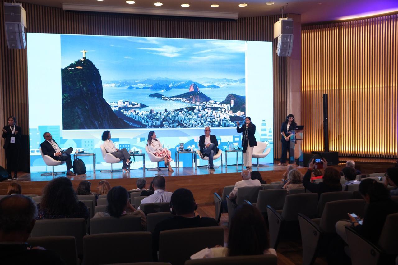 No fim da tarde, o debate avançou para a economia azul como um modelo de desenvolvimento que integra a sustentabilidade ambiental ao crescimento econômico. Foram apresentados casos práticos que ilustram essa integração: o programa de saneamento rural na bacia hidrogrgáfica do Guandu, que enfrenta o desafio cultural de engajar as comunidades; a iniciativa em Cabo Frio, que alia turismo, biotecnologia e economia solidária para resolver problemas ambientais como o excesso de algas; e a visão metropolitana do Rio de Janeiro, onde a concessão do saneamento é a base para recuperar a Baía de Guanabara e fomentar novos negócios sustentáveis.