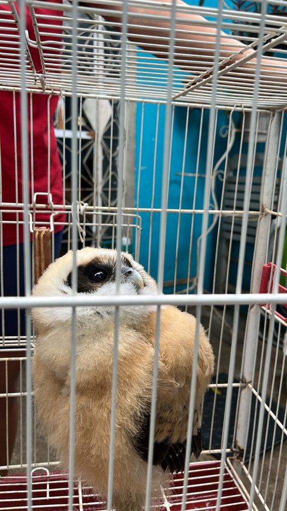 Uma coruja da espécie Murucututu (Pulsatrix perspicillata) foi resgatada em segurança no bairro de Bento Ribeiro, Zona Norte do Rio, na segunda-feira (03/11). A ação foi realizada pela equipe de guarda-parques do Parque Estadual do Mendanha, unidade administrada pelo Instituto Estadual do Ambiente (Inea).