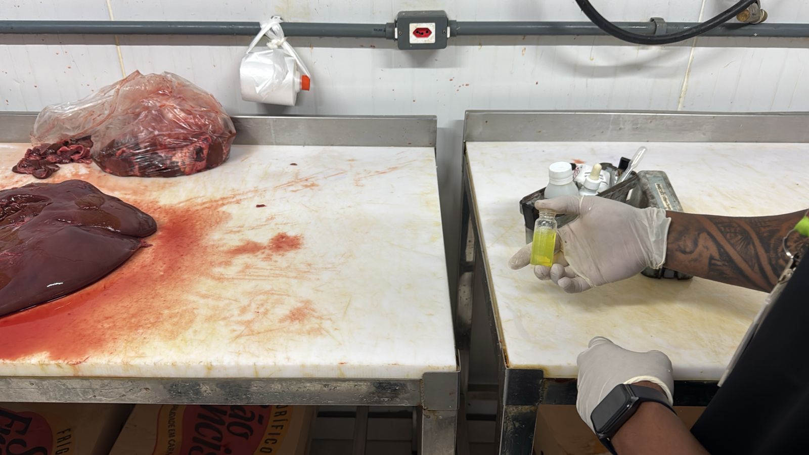 A água, sem qualquer tipo de tratamento, era utilizada no açougue e na padaria. No momento da inspeção, os agentes da delegacia flagraram alguns alimentos com prazo de validade vencido.