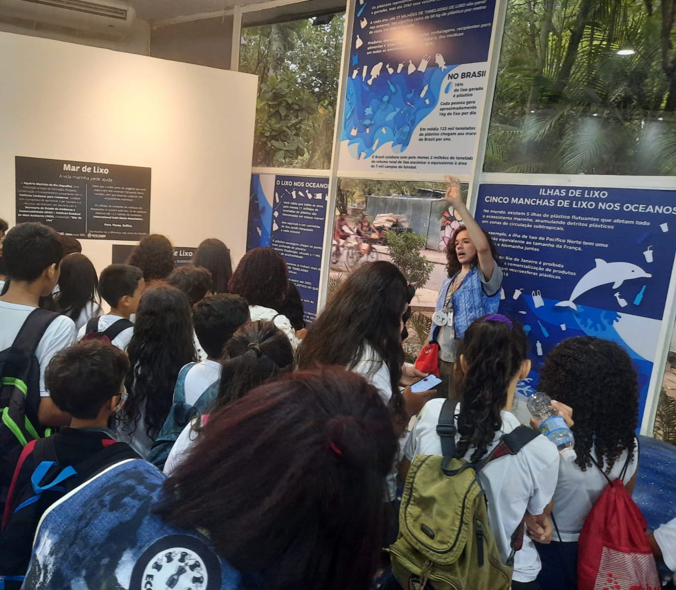 Com estudantes do 5º e 6º ano, as atividades buscaram refletir sobre a problemática da poluição dos oceanos e a importância de ecossistemas como os manguezais a partir das exposições presentes no espaço. Além disso, com a visita mediada pelos voluntários do ECOS, as turmas foram apresentadas a temas como a economia circular e o destinamento correto dos lixos.