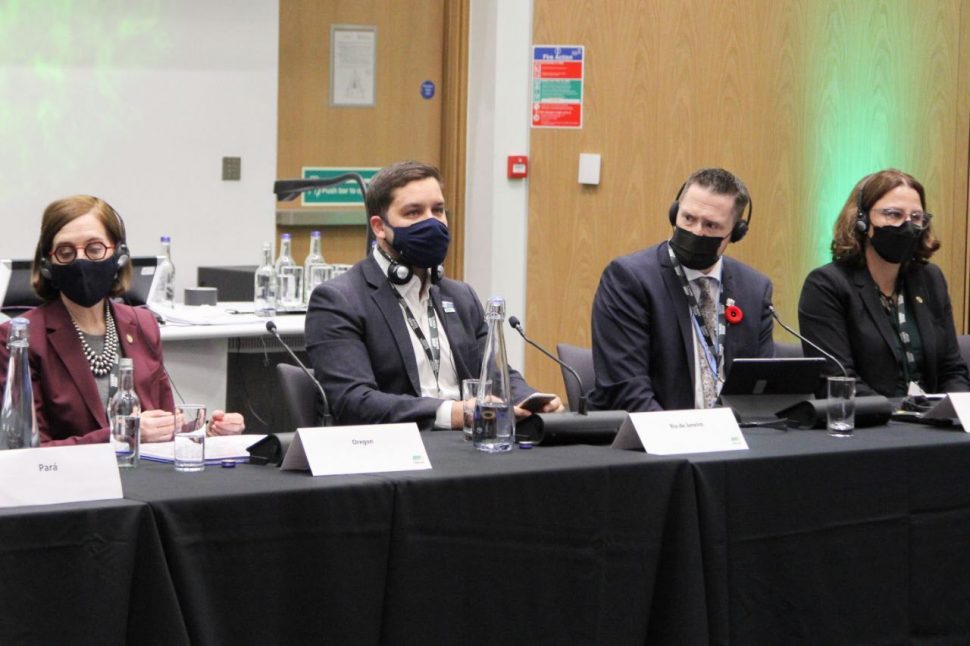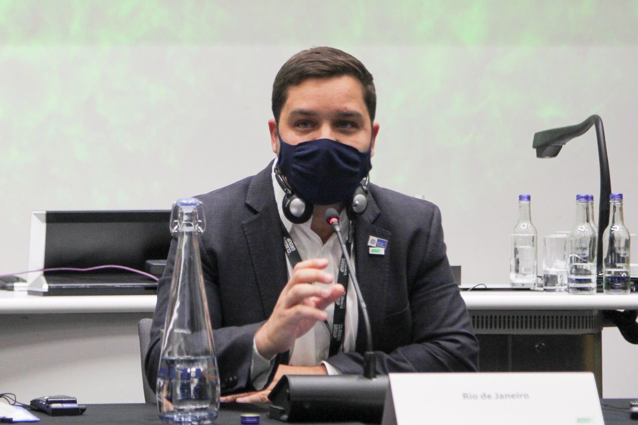 O Secretário do Ambiente e Sustentabilidade, Thiago Pampolha, participou neste domingo (7) da cerimônia de adesão do Estado do Rio de Janeiro à campanha da ONU (Organização das Nações Unidas) para reduzir emissões de poluentes e mitigar efeitos das mudanças climáticas, na Cop26 em Glasgow, Escócia.