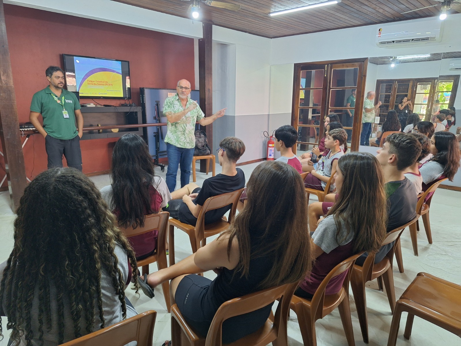 A ação contou com uma palestra do coordenador de Uso Público do Parque Estadual da Serra da Tiririca, André Costa, que falou sobre a diversidade biológica e a história da unidade de conservação para os estudantes do 7º e do 8º ano do Ensino Fundamental:
