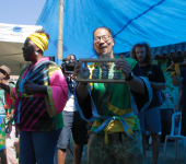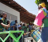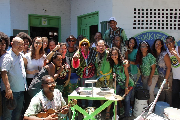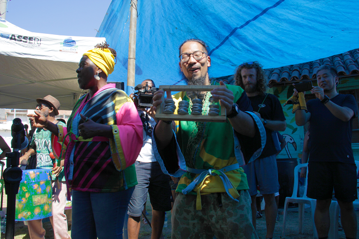 O intercâmbio cultural entre Brasil e Japão ocorreu ao som de muito Samba, Axé e Bossa Nova nesta quinta-feira (24), na Comunidade Roquete Pinto, em Ramos. Às margens da Baía de Guanabara, a Coordenadora do Projeto Funk Verde, Regina Café, regeu os jovens das comunidades da Rocinha e Roquete Pinto, em uma apresentação emocionante com o artista japonês Bucket Drummer Masa.