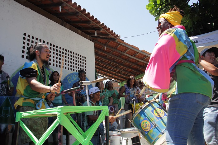 O encontro com o projeto Funk Verde, da Secretaria de Estado do Ambiente e Sustentabilidade (Seas) e do Instituto Estadual do Ambiente (Inea), nasceu do desejo do artista de trocar experiências com jovens de comunidades cariocas, que assim como ele, reutilizam o lixo para produzir seus instrumentos musicais.