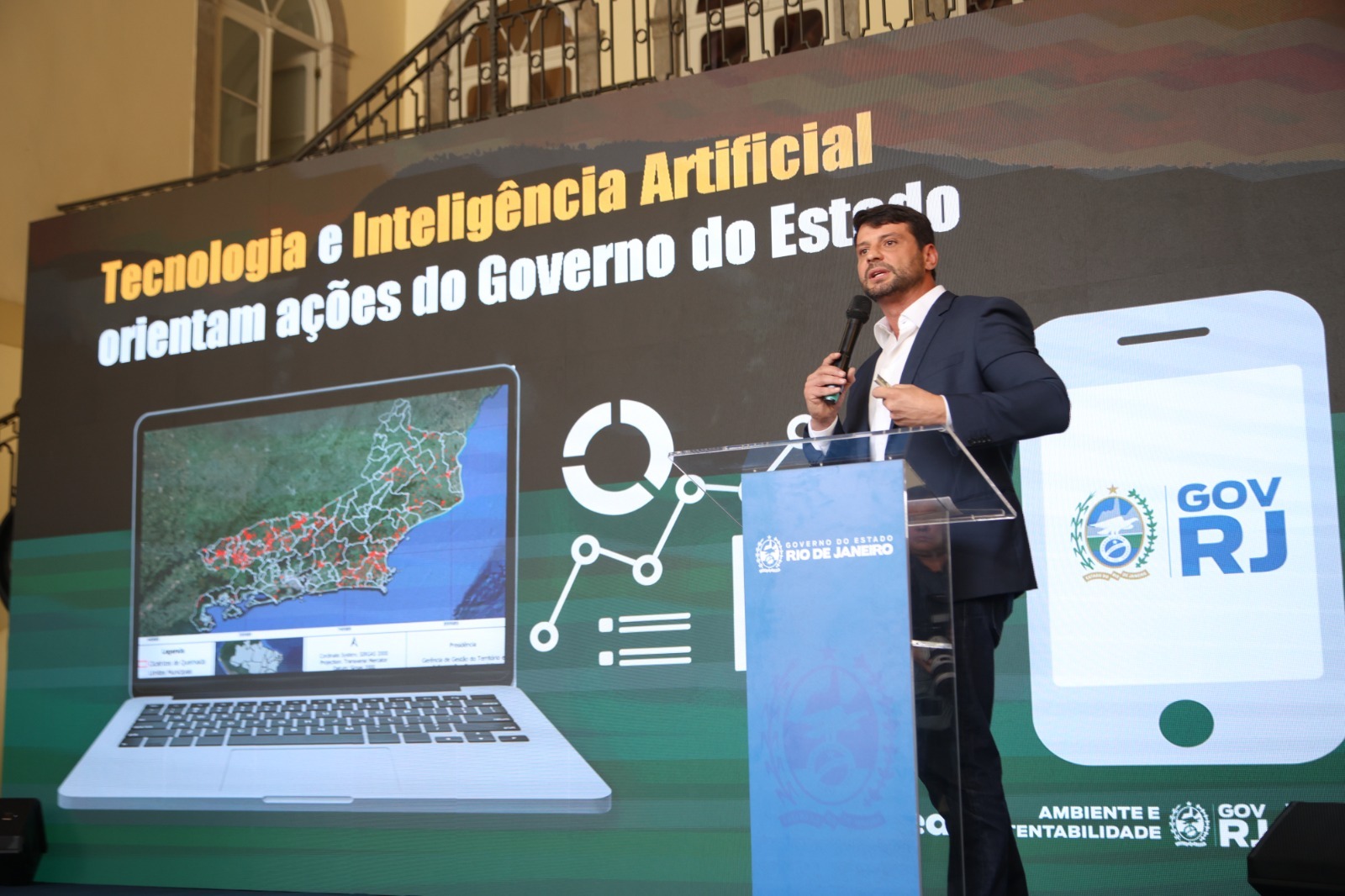 O Governo do Estado lançou, nesta terça-feira (8/11), um aplicativo que utiliza inteligência artificial para monitorar queimadas no estado do Rio. A nova ferramenta digital “Olho no Verde – Queimadas” foi criada com o objetivo de gerar informações, de forma rápida, sobre as áreas atingidas pelo fogo, agilizando o combate a incêndios. A ação acontece por meio da Secretaria de Estado do Ambiente e Sustentabilidade. Durante a cerimônia, no Palácio Guanabara, a gestão também apresentou um projeto de lei para modernizar e tornar as ações contra crimes ambientais mais eficazes, com aumento do valor das multas.