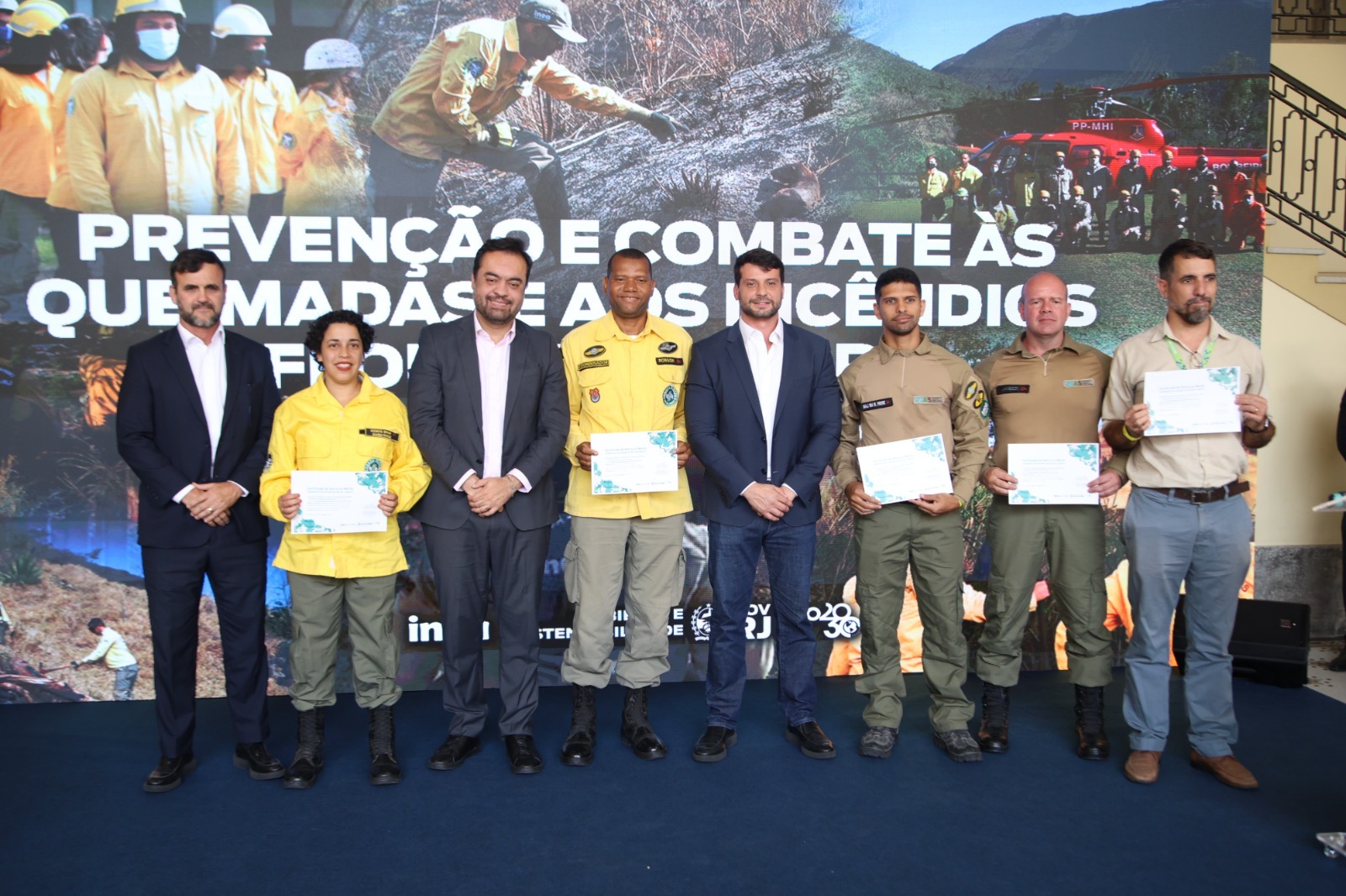 Na cerimônia, Castro e Rossi também homenagearam agentes que atuaram nas operações de combate ao fogo, incluindo membros do Inea, do Corpo de Bombeiros, da Polícia Ambiental, da Delegacia de Proteção ao Meio Ambiente e do Ministério Público do Estado do Rio de Janeiro. Além de placas de reconhecimento, os homenageados receberam certificados de agradecimento como forma de valorizar os esforços na proteção das áreas florestais do estado.