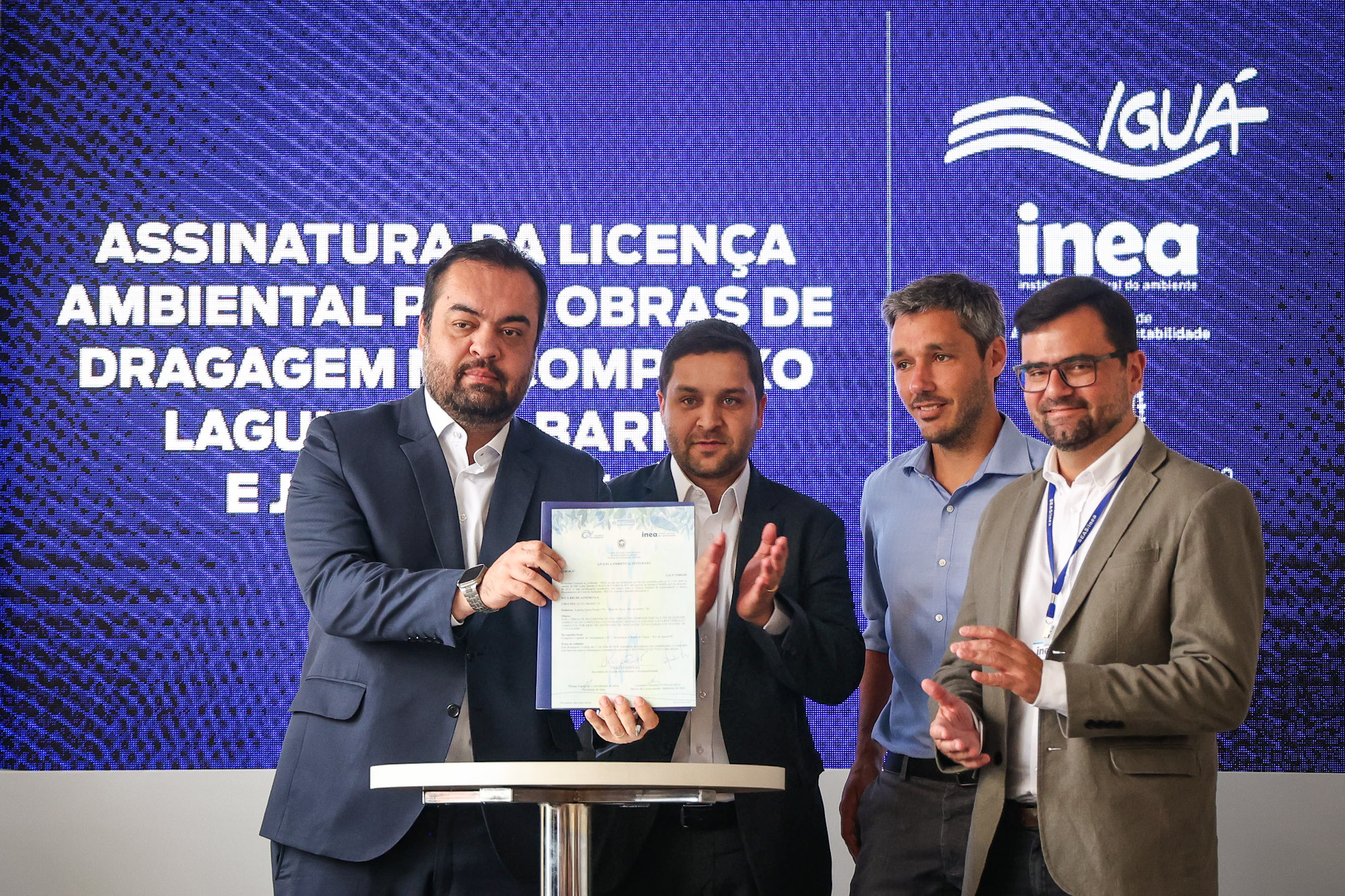O governador Cláudio Castro e o vice-governador Thiago Pampolha assinaram, nesta terça-feira (18/7), a licença ambiental para obras de dragagem no Complexo Lagunar da Barra e de Jacarepaguá, na Zona Oeste da capital fluminense. A ação é a concretização de uma promessa olímpica do Rio de Janeiro, assumida antes da Rio 2016.