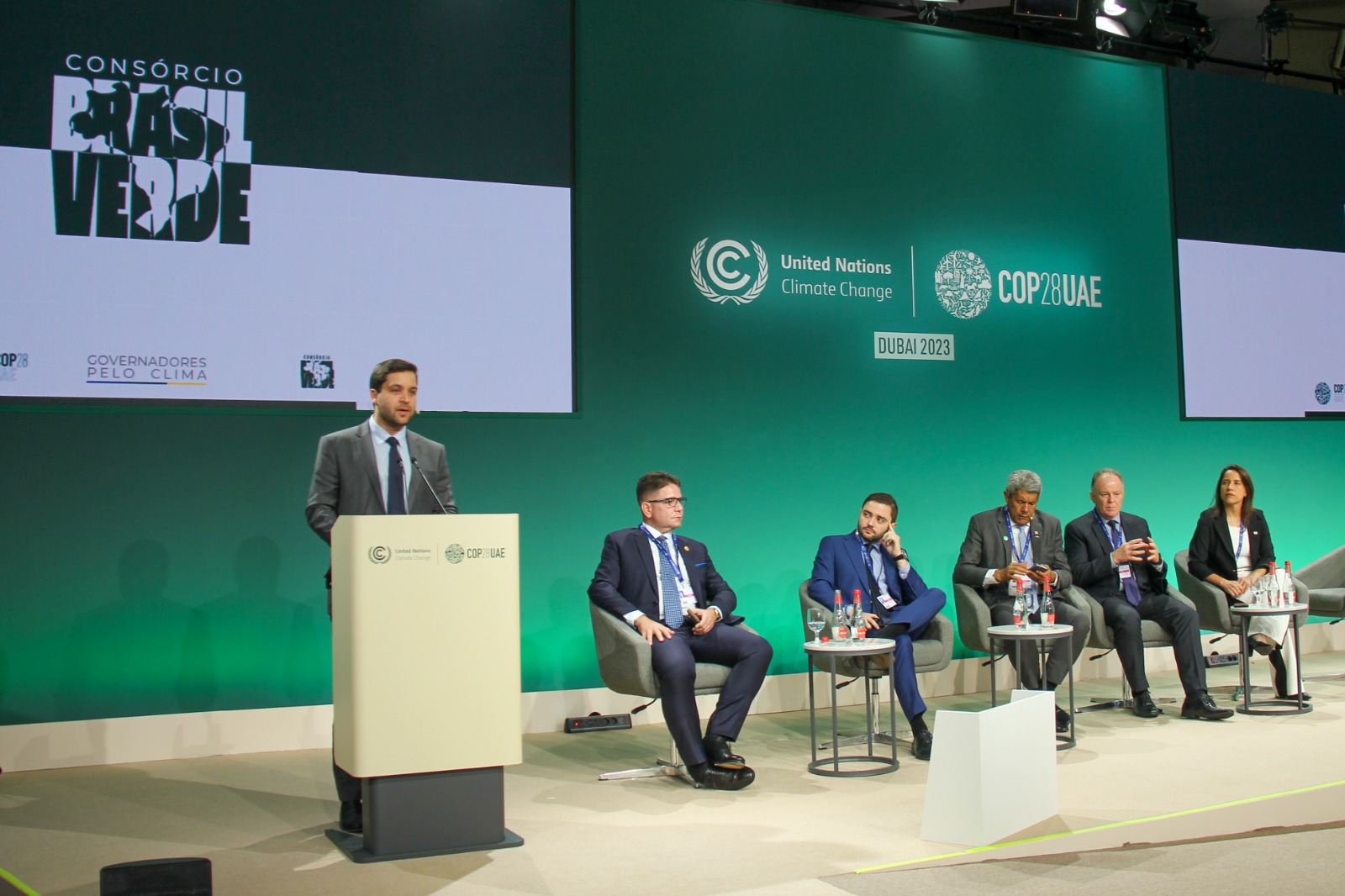 O Governo do Estado iniciou sua participação nos debates da COP28 nesta sexta-feira (1º/12). No painel ‘Governança multinível para o fortalecimento da integração climática nacional’, o vice-governador e secretário do estado do Ambiente e Sustentabilidade, Thiago Pampolha, falou dos avanços e desafios do Rio de Janeiro. Ele destacou a retomada do Fórum de Mudanças Climáticas, instituído há muitos anos, mas implementado na gestão do governador Cláudio Castro. Na segunda agenda, Pampolha palestrou ao lado dos governadores do Espírito Santo, Bahia, Pernambuco, entre outras autoridades participantes do Diálogo colaborativo entre Estados do Consórcio de Governadores pelo Clima Brasil Verde.