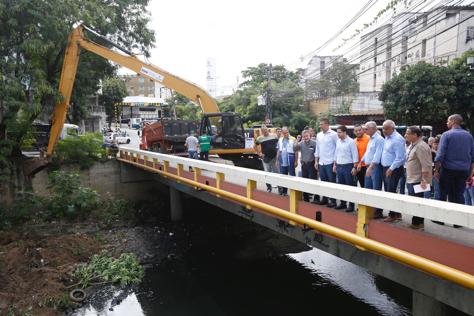 A Secretaria de Estado do Ambiente e Sustentabilidade (SEAS) e o Instituto Estadual do Ambiente (INEA) iniciaram, nesta terça-feira (07/11), uma nova etapa do Limpa Rio em São Gonçalo, Região Metropolitana. Com previsão de seis meses de serviços, a limpeza e o desassoreamento do Rio Alcântara contemplarão um trecho de 4,8 km, entre o bairro de Alcântara e o seu deságue no Rio Guaxindiba, Jardim Catarina. Cerca de 300 mil moradores serão beneficiados com a segurança ambiental e a qualidade de vida que a limpeza do rio proporciona. O início das ações foi acompanhado pelo secretário do Ambiente e vice-governador, Thiago Pampolha, secretário das Cidades, Douglas Ruas, e do prefeito gonçalense, Capitão Nelson.