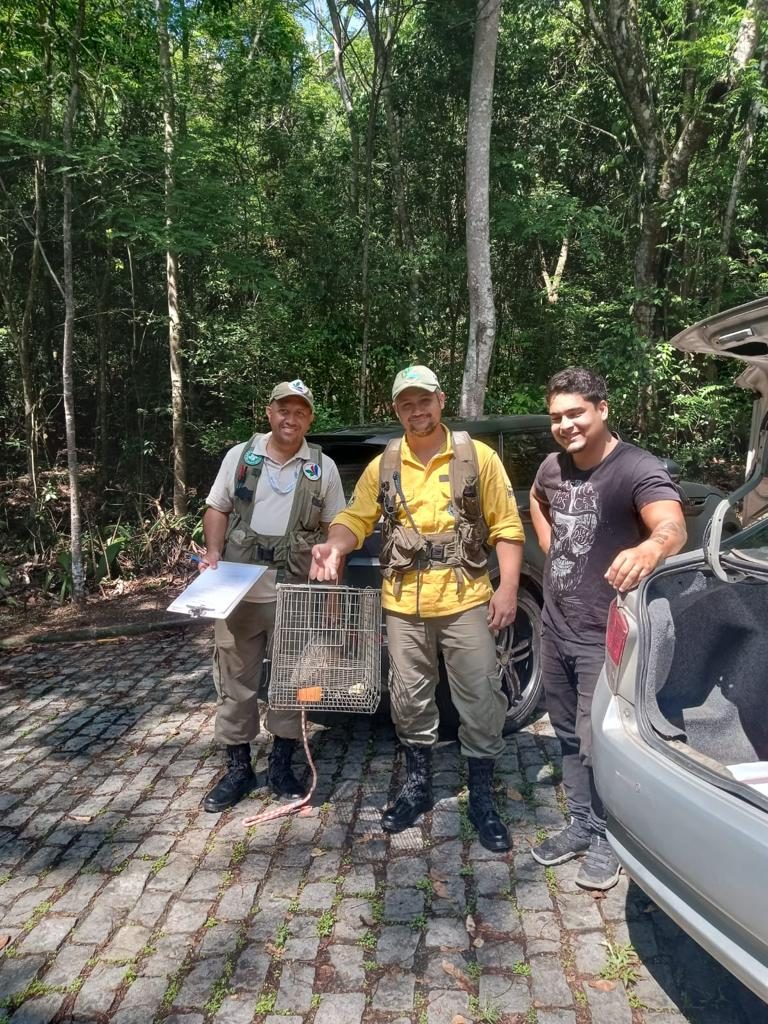 O gambá se encontrava em boas condições de saúde e foi devolvido ao seu habitat em trecho de floresta da unidade de conservação.