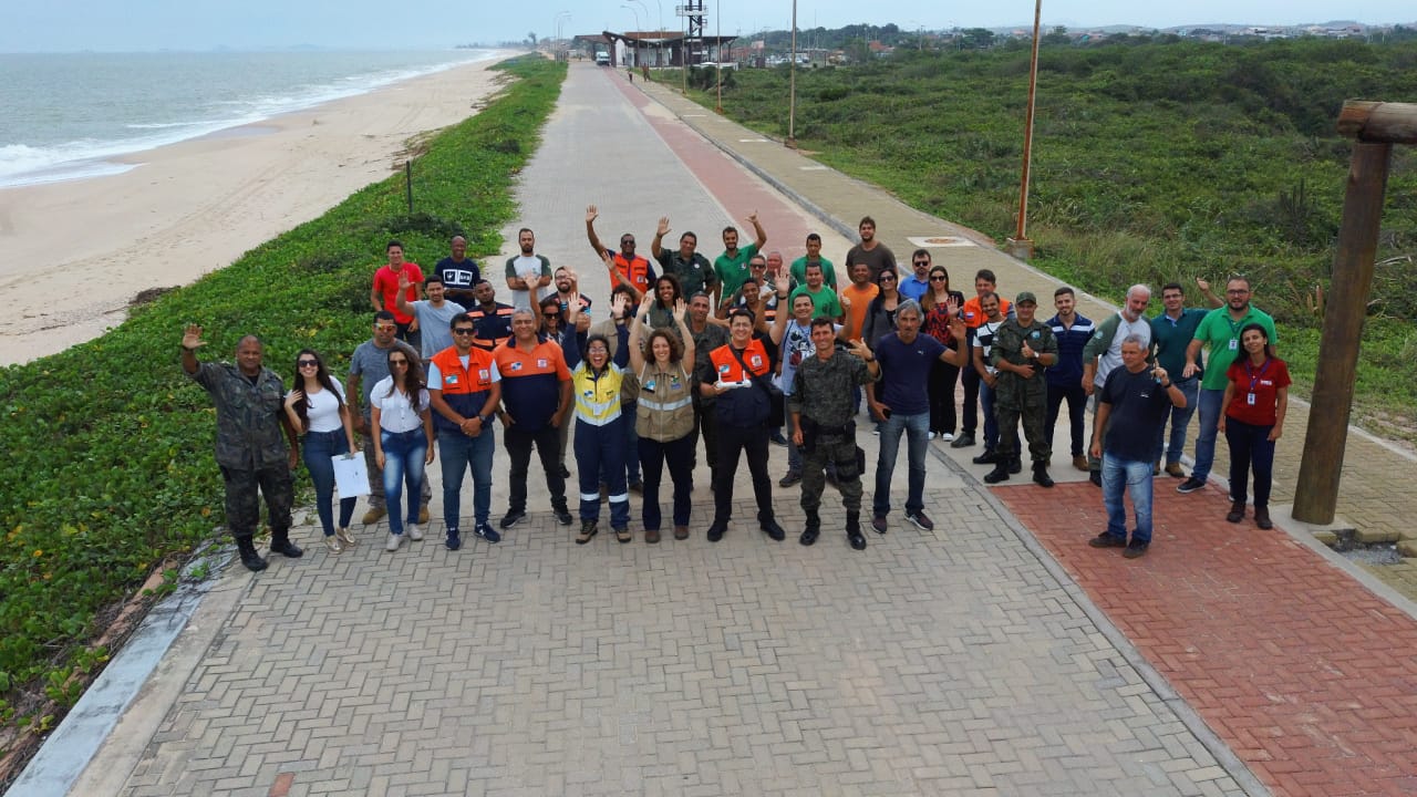O exercício prático foi realizado na Praia de Carapebus, onde os técnicos aprenderam sobre como proceder com a aproximação de mancha de óleo e retirada adequada do produto, bem como sobre a logística para a disposição temporária do resíduo oleoso.