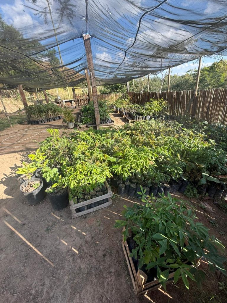 As equipes do parque realizam trabalhos de campo em áreas georreferenciadas, incluindo o núcleo da Unidade de Conservação e sua zona de amortecimento. As sementes de matrizes nativas são coletadas na própria UC, em seu período adequado. O plantio é feito em saquinhos com uma mistura de adubo, terra vermelha e areia, onde as mudas se desenvolvem com irrigação regular. O ciclo de produção varia conforme a espécie, levando em média de dois a quatro meses para que as mudas atinjam o ponto ideal para plantio definitivo.