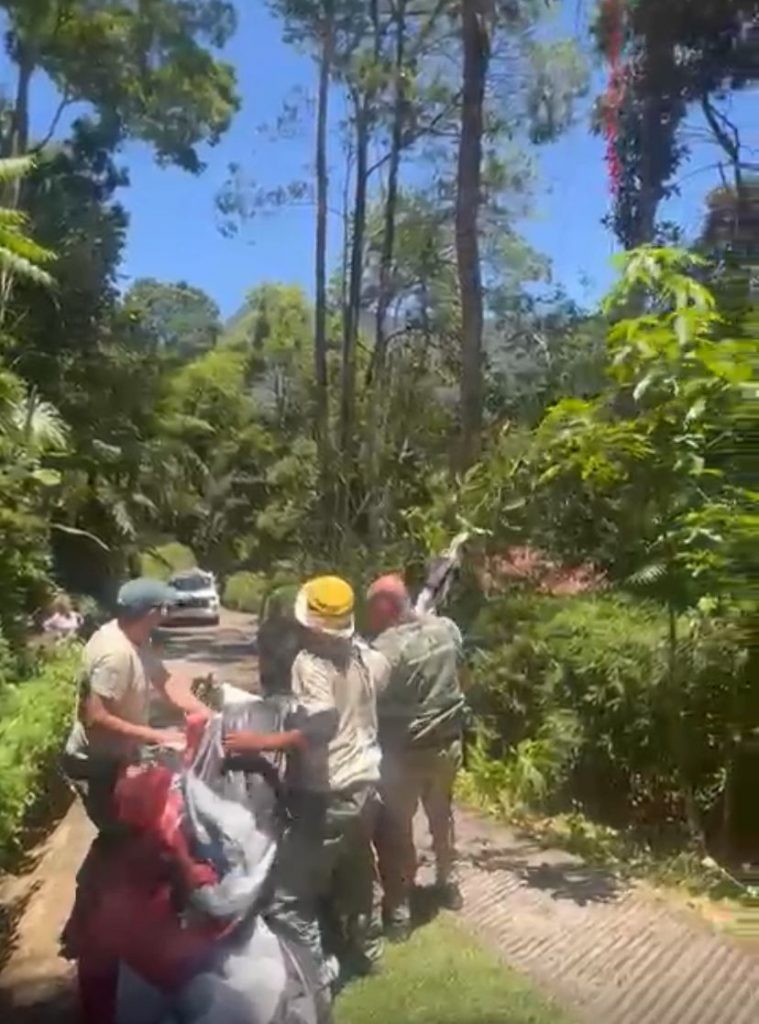 Guarda- parques do Inea monitoravam quatro balões que foram avistados próximos a unidade de conservação. Um deles começou a perder força, e acabou caindo sobre a copa de uma das árvores do Mona.