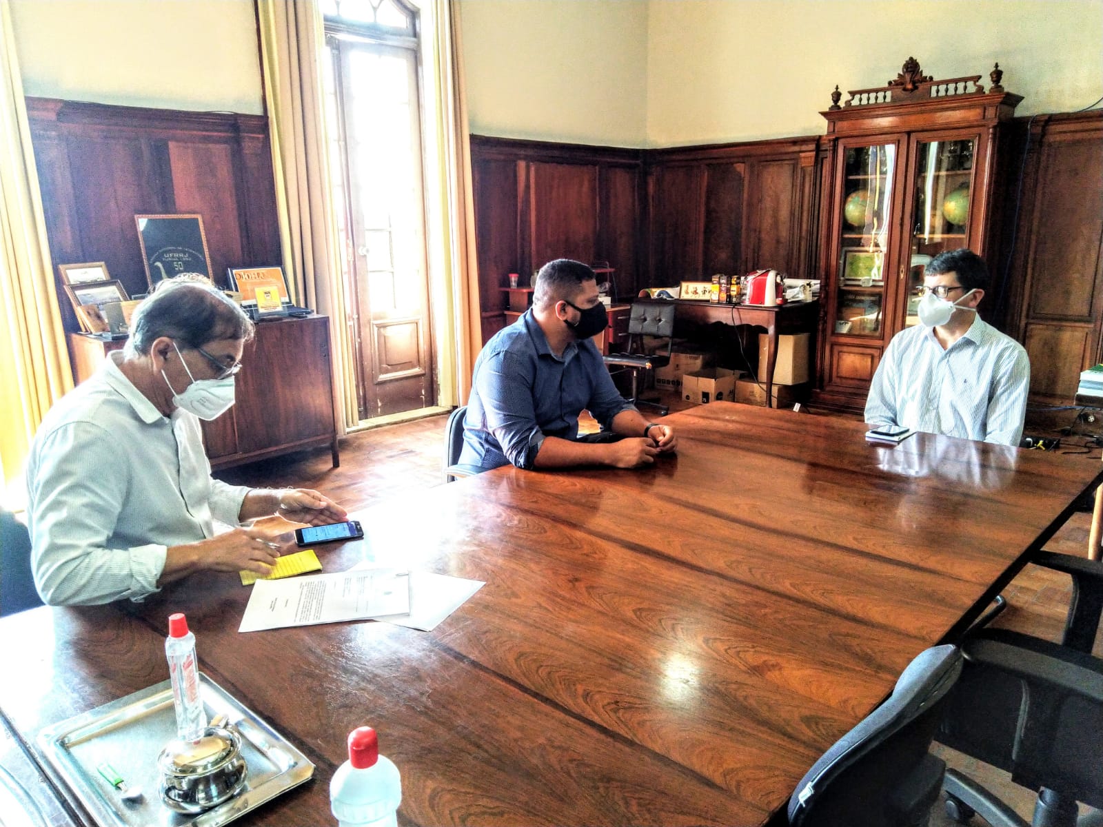 A reunião do gestor da APA Guandu, Bruno Oliveira, com o reitor da UFRRJ, Ricardo Rodrigues, ocorreu na sede da universidade e contou com a presença do agente ambiental Anderson Silva. Na ocasião, foram discutidas futuras parcerias técnico-científicas e a realização de convênio entre a universidade e a unidade de conservação, assim como o envio de equipe para estudo da fauna e da flora do local.