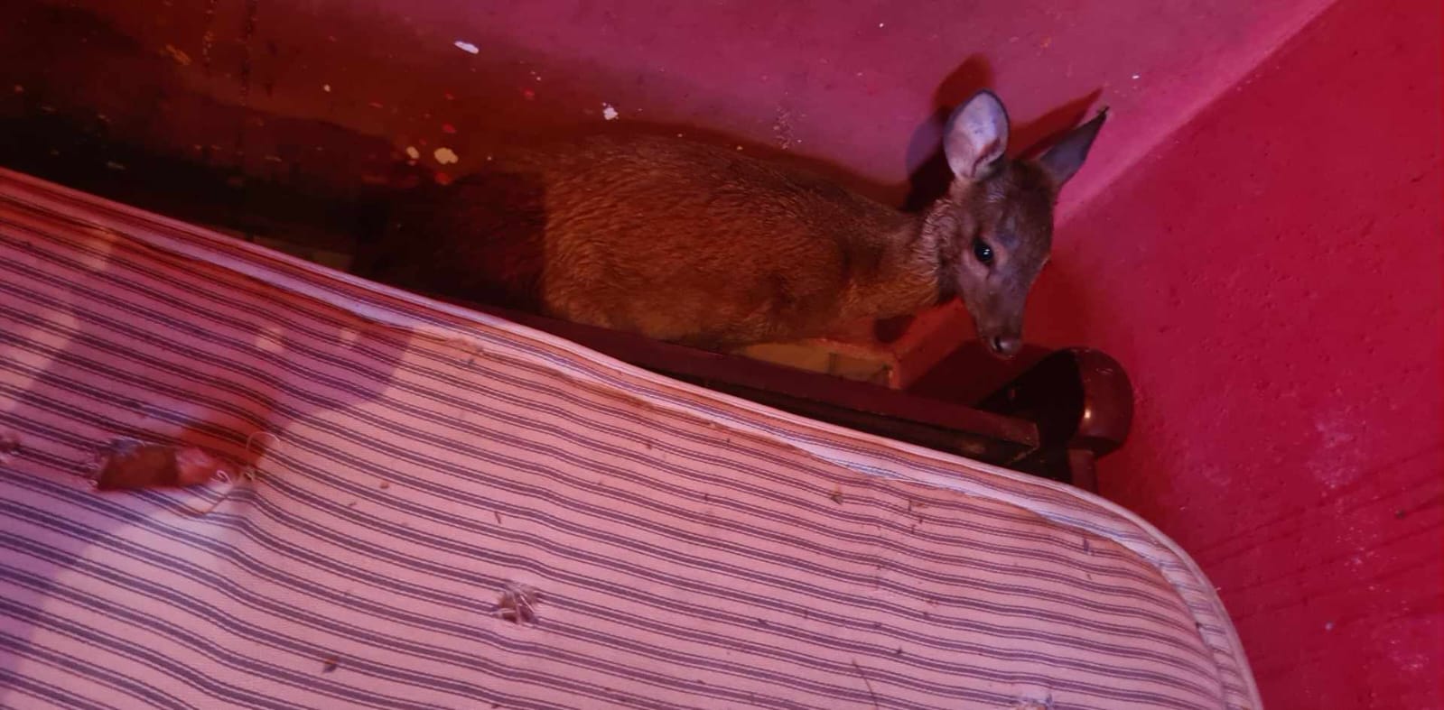 O animal se abrigou em uma casa na região, depois de fugir com medo de cachorros que estavam no local. O veado foi devidamente resgatado e levado até o Parque Estadual da Pedra Selada, para que os profissionais pudessem atestar o seu bem-estar. Depois de constatarem que o animal estava sem ferimentos, ele foi imediatamente solto. O filhote, é um veado catingueiro, nome científico: Subulo gouazoubira