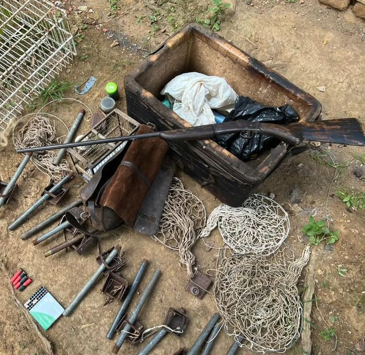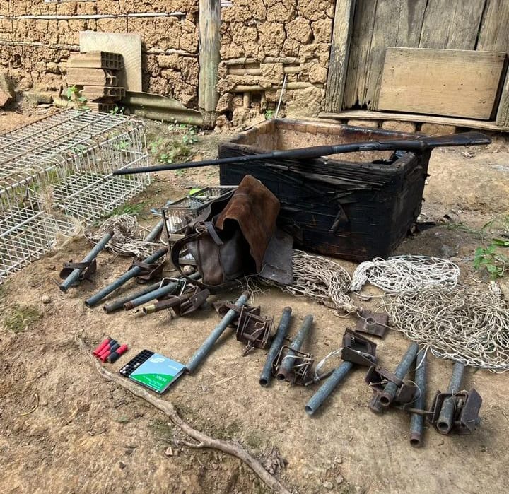 Na localidade da estrada Boca do Mato, as equipes encontraram e apreenderam uma espingarda calibre 36, treze trabucos (arma de fabricação caseira para caça), espoletas, diversas munições e outros aparatos utilizados para cometer o crime ambiental. Todo o material foi encaminhado para a sede da 1ª Unidade de Polícia Ambiental.