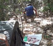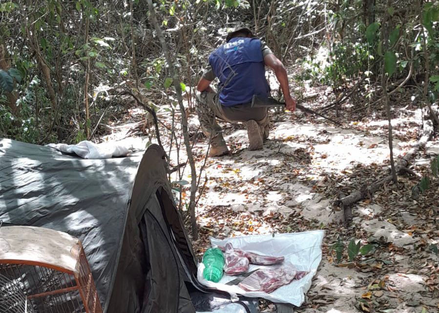 Nesta quinta-feira (16/3), o Instituto Estadual do Ambiente (Inea), através da Superintendência Regional Lagos São João (Suplaj), realizou uma operação para desmobilizar a ação de caçadores ilegais em Iguaba Grande, na Região dos Lagos. A equipe de fiscalização encontrou um acampamento dentro do território da Área de Proteção Ambiental Estadual da Serra da Sapiatiba com uma espingarda, facas, gaiolas e animais mortos.