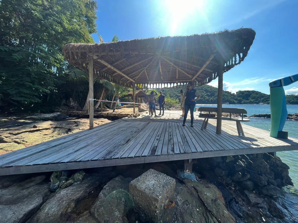 Na ocasião, foram encontradas obras em execução em uma área de preservação permanente localizada dentro da costeira, à beira-mar, com placas falsas que apontavam para uma suposta autorização do empreendimento por parte dos órgãos ambientais estaduais. Além disso, identificou-se supressão de vegetação, extração de pedras da costeira e demais danos ambientais.