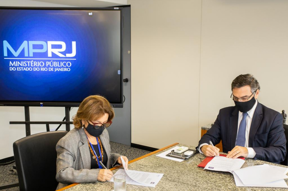 O Instituto Estadual do Ambiente (Inea) e o Ministério Público do Estado do Rio de Janeiro celebraram, nesta quinta-feira (8/10), convênio de cooperação para promover ações conjuntas que visam à implantação de projetos de Soluções baseadas na Natureza (SbN) para promover a segurança hídrica na Região Hidrográfica da Baía de Guanabara. O documento foi assinado pela presidente e pelo diretor de Biodiversidade, Áreas Protegidas e Ecossistemas do Inea, Diane Rangel, e João Eustáquio, respectivamente; pelo procurador-geral de Justiça, Eduardo Gussem, e pelo promotor José Alexandre Maximino.