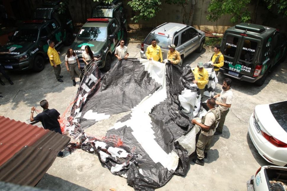 Um balão com cerca de 22 metros de altura foi apreendido neste sábado (2/12) por guarda- parques do Parque Estadual da Pedra Branca e por agentes do Comando de Polícia Ambiental, em Realengo, na zona oeste da cidade.