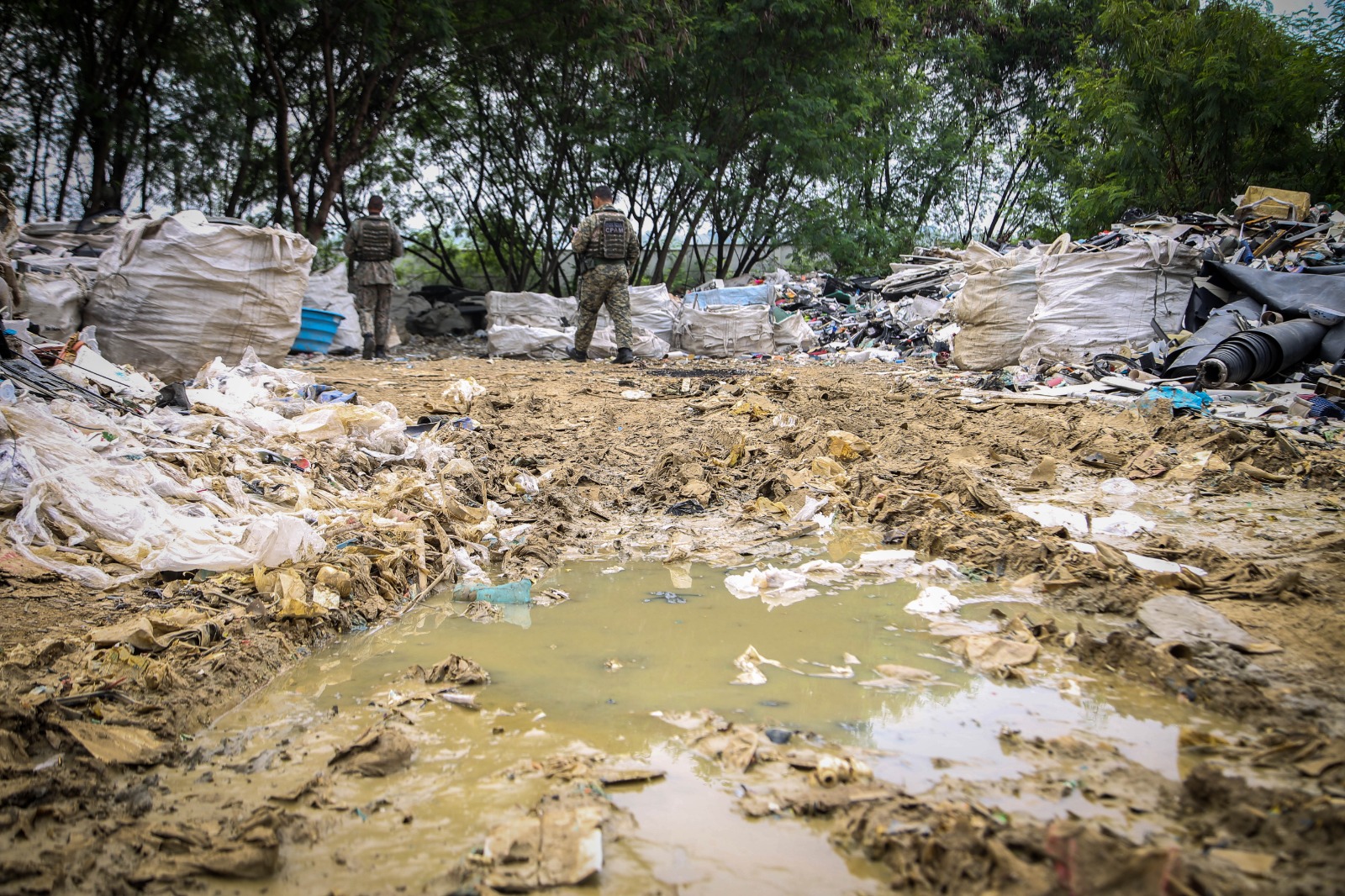 A Secretaria de Estado do Ambiente e Sustentabilidade do Rio e o Instituto Estadual do Ambiente (Inea) realizaram, nesta segunda-feira (31/03), uma operação conjunta com as polícias Civil e Militar para fiscalização em um aterro sanitário clandestino em Jardim Gramacho, em Duque de Caxias, na Baixada Fluminense. No terreno, localizado ao lado de um aterro sanitário desativado, caminhões despejavam os resíduos sólidos de forma irregular, incluindo caçambas com restos de obra e materiais eletrônicos e orgânicos.