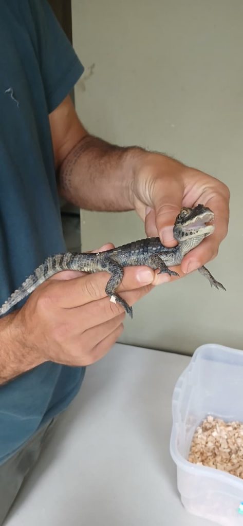 Um filhote de jacaré-do-papo-amarelo finalmente voltou para casa, na última sexta-feira (24/10), após período de reabilitação e cuidados médicos veterinários. Equipes do Refúgio de Vida Silvestre do Médio Paraíba do Instituto Estadual do Ambiente (Inea) e do Parque Zoológico Municipal de Volta Redonda realizaram a soltura do animal em um afluente do Rio Paraíba do Sul, dentro da unidade de conservação, no município de Pinheiral.