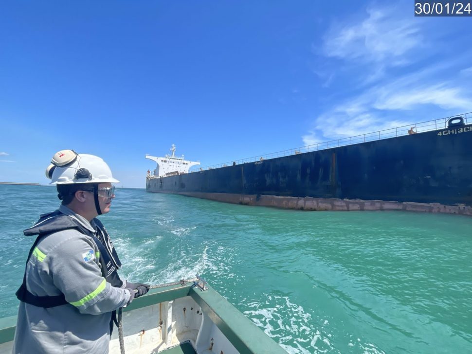 O Instituto Estadual do Ambiente (Inea), por meio da Diretoria de Pós Licença e Fiscalização Ambiental e da Superintendência Regional Baixo Paraíba do Sul, fiscalizou nesta terça-feira (30/1), um navio de origem britânica que encalhou no Porto do Açu, localizado em São João da Barra. A inspeção teve como objetivo avaliar o cenário, apontando aspectos ambientais no entorno da área onde o navio se encontra imobilizado, em um banco de areia próximo ao terminal Ferroport.