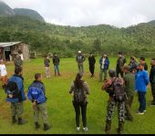 Em campo, o grupo se subdividiu em dois. O primeiro, guiado pelo palestrante Jalmirez Silva com 10 participantes mais experientes, subiu em direção às torres para observar os pássaros que ficam nos pontos mais altos. O outro grupo, com 15 participantes iniciantes, desceu a estrada em direção ao São Bernardo com os palestrantes André Bohrer e Juran Santos.