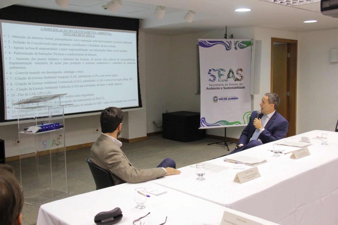 A mesa redonda de debates foi coordenada pelo procurador-chefe do Inea, Rafael Daudt D’Oliveira, que apresentou as novidades na minuta do novo processo de licenciamento. Na ocasião, o procurador falou sobre o objetivo do novo decreto. “O que se busca é promover desenvolvimento garantindo a proteção ao meio ambiente. A ideia do decreto é da proporcionalidade: Controle Estatal diretamente proporcional aos riscos e impactos do empreendimento”, explicou.