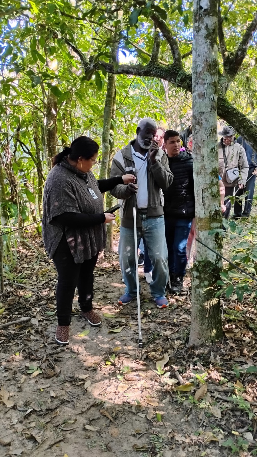 Com 90 metros de extensão, a trilha foi adaptada para proporcionar uma experiência acessível e imersiva, utilizando cordas, guias, piso tátil e elementos naturais que estimulam os sentidos do tato e do olfato. Durante o percurso, os participantes puderam sentir diferentes texturas, como cascas de árvores, e aromas de plantas, ampliando a conexão com a natureza de forma inclusiva.