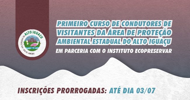 Estão abertas, até 3/7, as inscrições para o primeiro curso de Guias e Condutores de Visitantes da Área De Proteção Ambiental (APA) Estadual do Alto Iguaçu, unidade de conservação administrada pelo Instituto Estadual do Ambiente (Inea). Podem se inscrever residentes de Duque de Caxias, Nova Iguaçu e Belford Roxo, preferencialmente aqueles que moram no entorno imediato da APA.