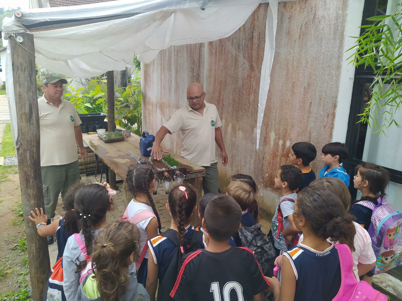 Além disso, os visitantes puderam conhecer o processo de produção das mudas nativas da Mata Atlântica e foram convidados a participar da transferência das mudas prontas na estufa do parque para o viveiro.