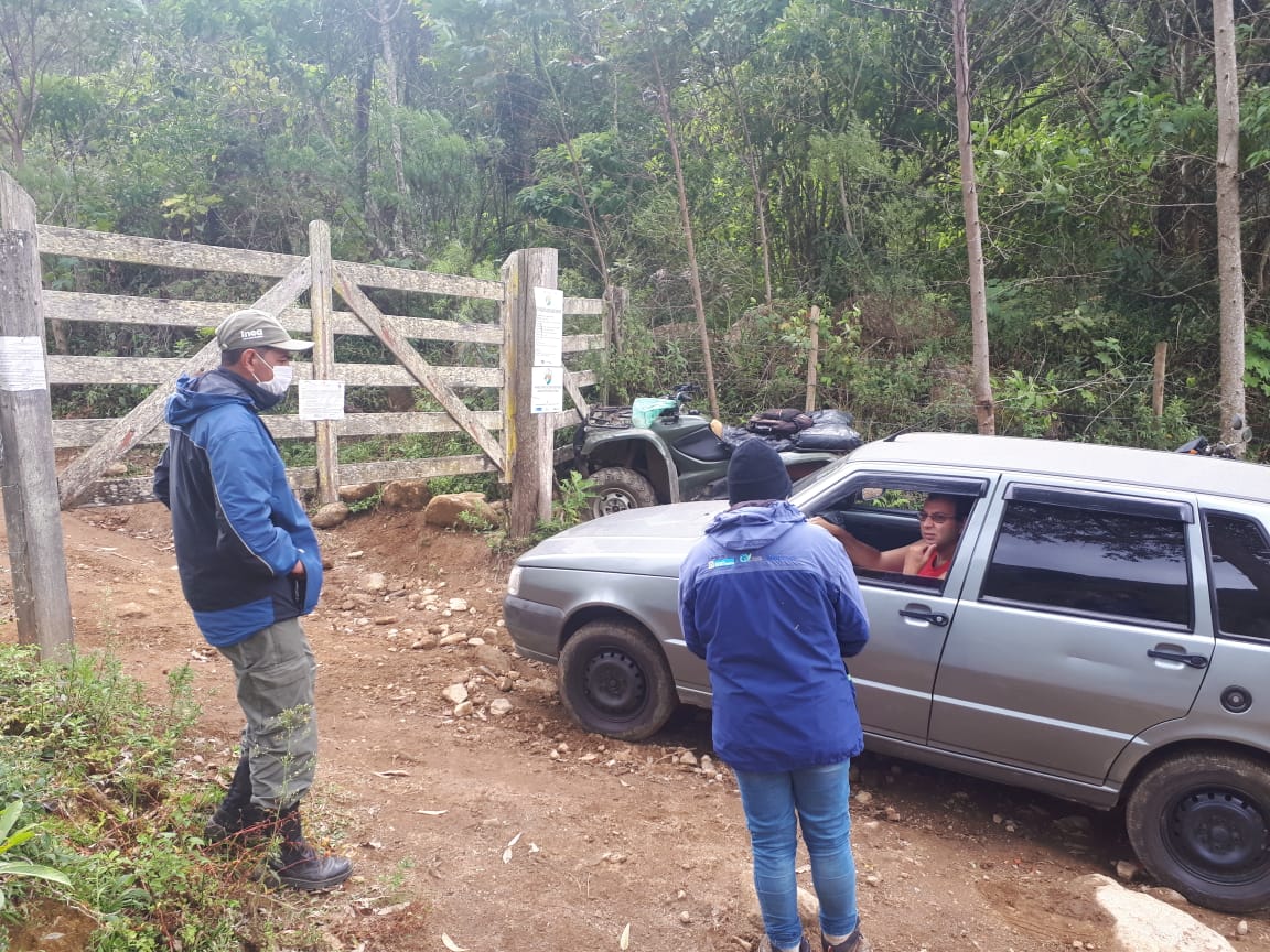 Durante a vistoria, a equipe fechou, com cadeados, as porteiras de entrada dos atrativos, instalou sinalização e afixou cartazes com informações sobre o Decreto Estadual que instituiu o isolamento social e outras medidas.