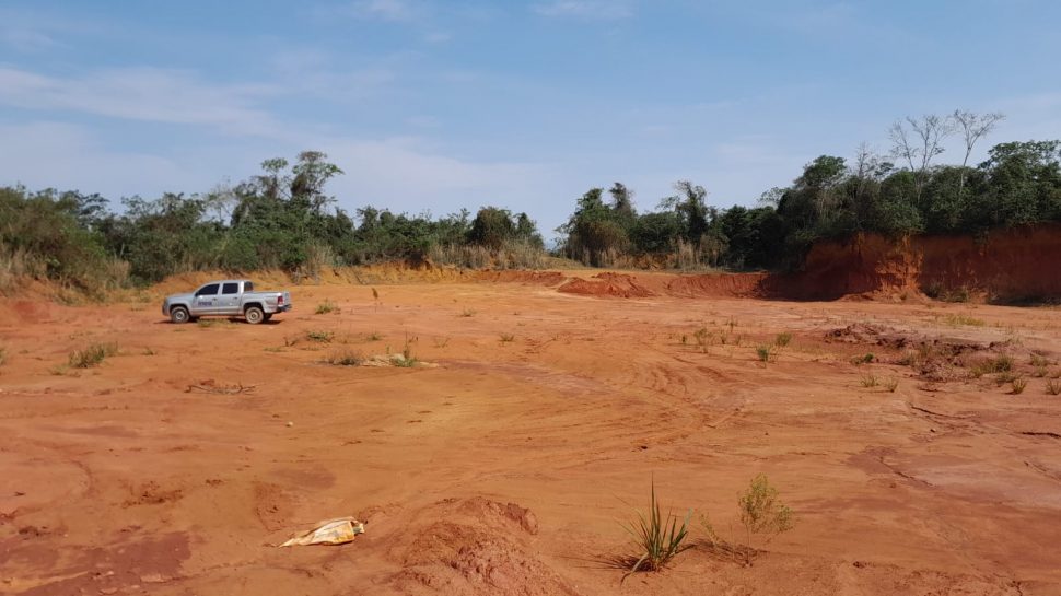 A ação foi desencadeada a partir de denúncia e, após levantamento prévio da informação, a equipe flagrou desmatamento de trecho quivalente a seis campos de futebol e extração mineral ilegal em Área de Preservação Permanente (APP). No momento da operação, não havia ninguém no local.