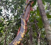 A caninana é uma serpente de grande porte, geralmente não peçonhenta, encontrada em florestas da região Neotropical. De hábito diurno e frequentemente arborícola, pode atingir entre 2,5 e 2,8 metros de comprimento. Alimenta-se de pequenos mamíferos, aves, lagartos, anfíbios e ovos, desempenhando um papel fundamental no controle de roedores e no equilíbrio do ecossistema.