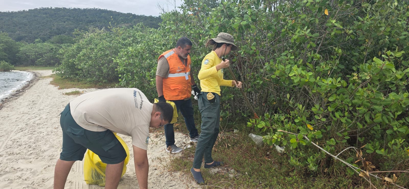Durante as atividades de monitoramento, guarda-parques das unidades de conservação identificaram um acúmulo preocupante de resíduos em uma área de manguezal. Imediatamente a equipe mobilizou seus recursos para uma intervenção. O foco foi uma ação direta e eficiente para conter danos ao frágil ecossistema, priorizando a pronta resposta.