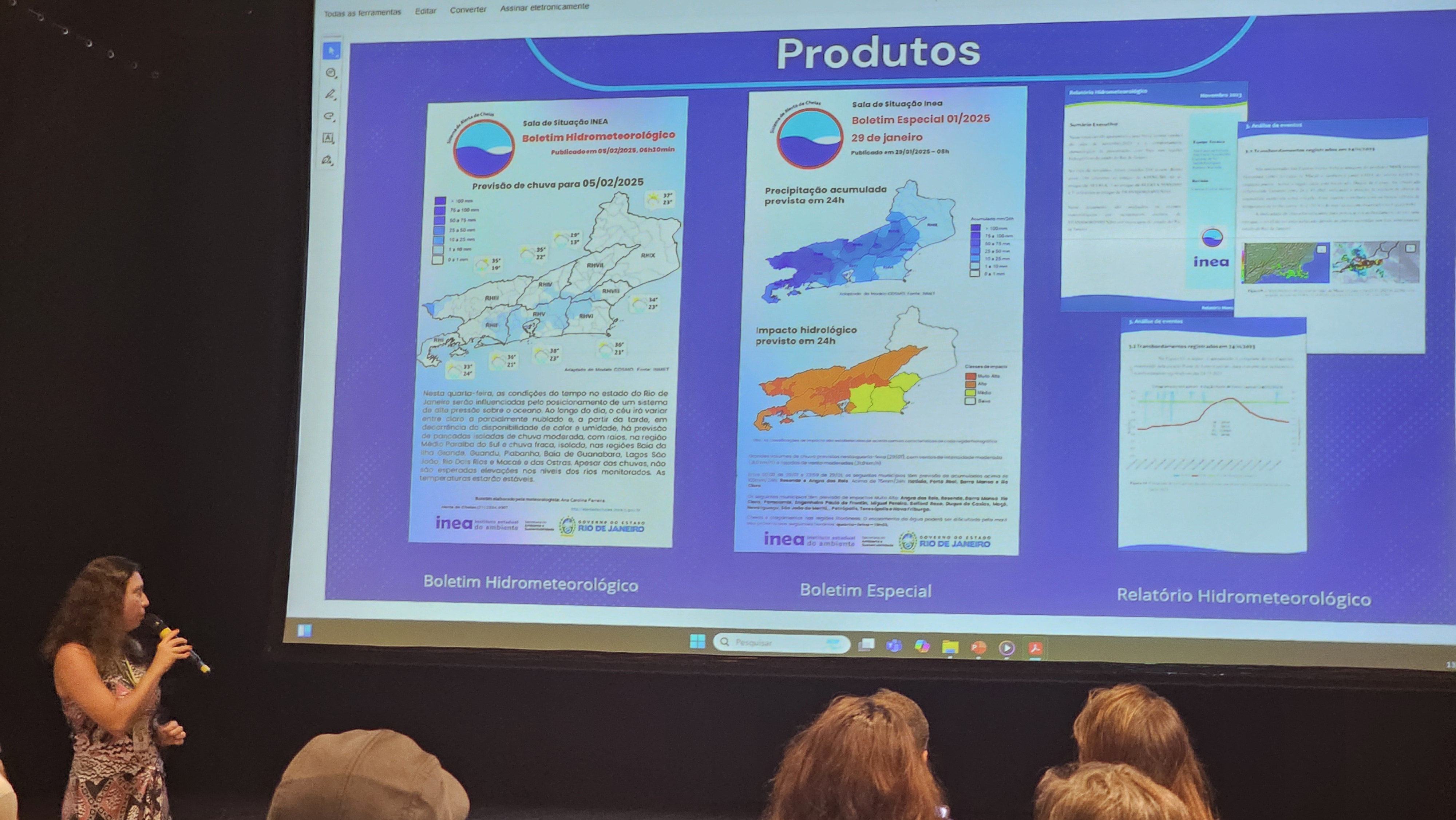 A gerente de Instrumentos de Recursos Hídricos e Governança das Águas (GERAGUA), Raquel Emerick, apresentou a rede hidrometeorológica do Inea. A exposição explicou o funcionamento e abordou a previsão de expansão para a Região Hidrográfica I (RH I), reforçando o compromisso com a melhoria da infraestrutura de monitoramento hídrico no estado.