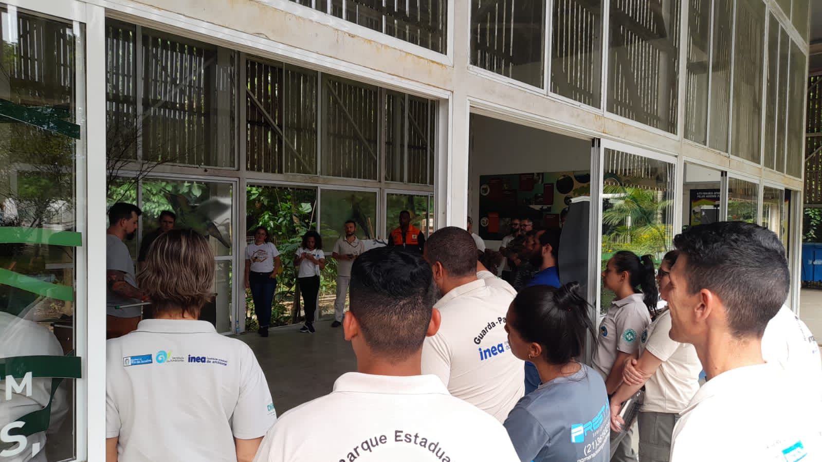 Estiveram presentes parceiros das comunidades do entorno da sede do parque, o Grupamento de Proteção Ambiental de Mangaratiba, a Secretaria de Meio Ambiente de Itaguaí, a Defesa Civil de Mangaratiba, equipe da Reserva Ecológica Estadual da Juatinga, monitores e coordenadores ambientais, 4° Unidade da Polícia Ambiental, representantes do Instituto Boto Cinza e representantes dos condomínios do entorno da sede.