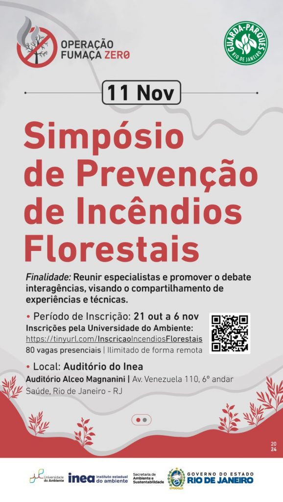 Com a crescente preocupação sobre os impactos das queimadas, o simpósio trará discussões sobre o papel das instituições públicas na prevenção desses eventos e na mitigação dos danos causados ao meio ambiente. Entre maio e setembro de 2024, o estado do Rio de Janeiro registrou 195 áreas queimadas, totalizando mais de 5.200 hectares de florestas e habitats destruídos, ressaltando a urgência do tema.