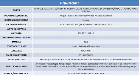 Manutenção e implantação de infraestrutura no Parque Estadual dos Três Picos / Núcleo Paraiso - Guapimirim