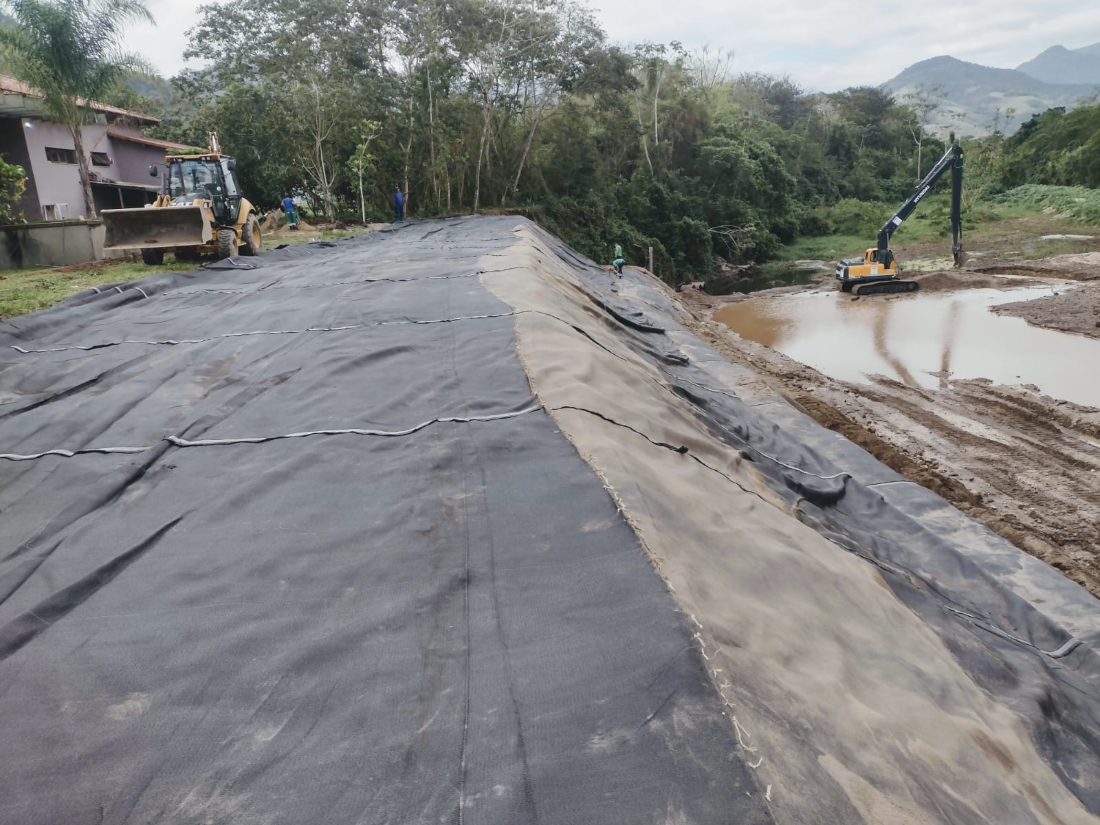 As intervenções também incluem o uso de geobags, espécie de bolsas em formas geotêxteis onde são acondicionados os sedimentos retirados do Rio Macacu. Após o armazenamento dos sedimentos, as geobags são dispostas nas margens desse corpo hídrico. Tal procedimento não oferece riscos e nem impactos ao meio ambiente.
