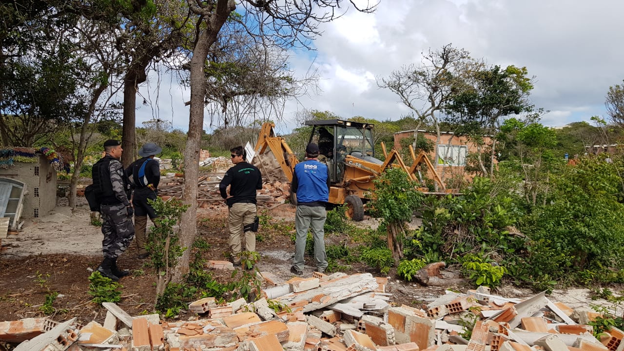 A Secretaria de Estado do Ambiente e Sustentabilidade (Seas), por meio da Superintendência Integrada de Combate aos Crimes Ambientais, o Instituto Estadual do Ambiente (Inea) e o Ministério Público Estadual deflagraram, nesta quinta-feira (29/8), operação para demolir 53 construções irregulares em área do Parque Estadual da Costa do Sol, no bairro Figueiras, em Arraial do Cabo.