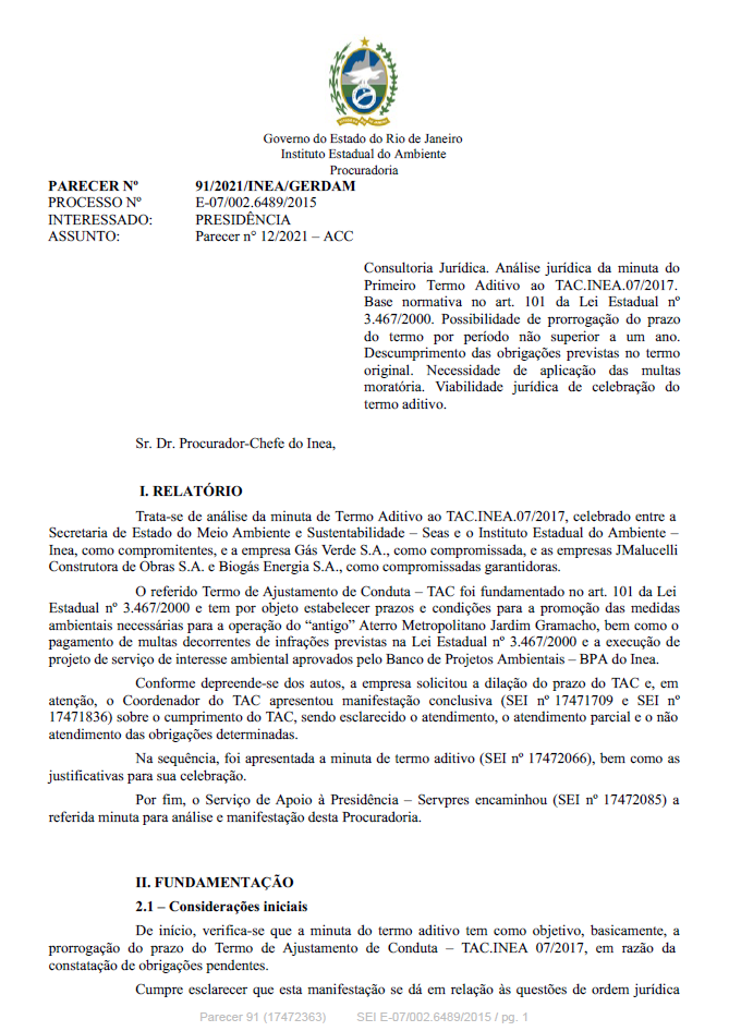 Consultoria Jurídica. Análise jurídica da minuta do Primeiro Termo Aditivo ao TAC.INEA.07/2017. Base normativa no art. 101 da Lei Estadual nº 3.467/2000. Possibilidade de prorrogação do prazo do termo por período não superior a um ano. Descumprimento das obrigações previstas no termo original. Necessidade de aplicação das multas moratória. Viabilidade jurídica de celebração do termo aditivo.