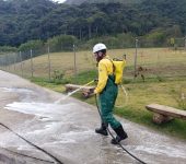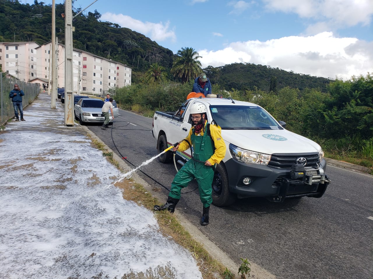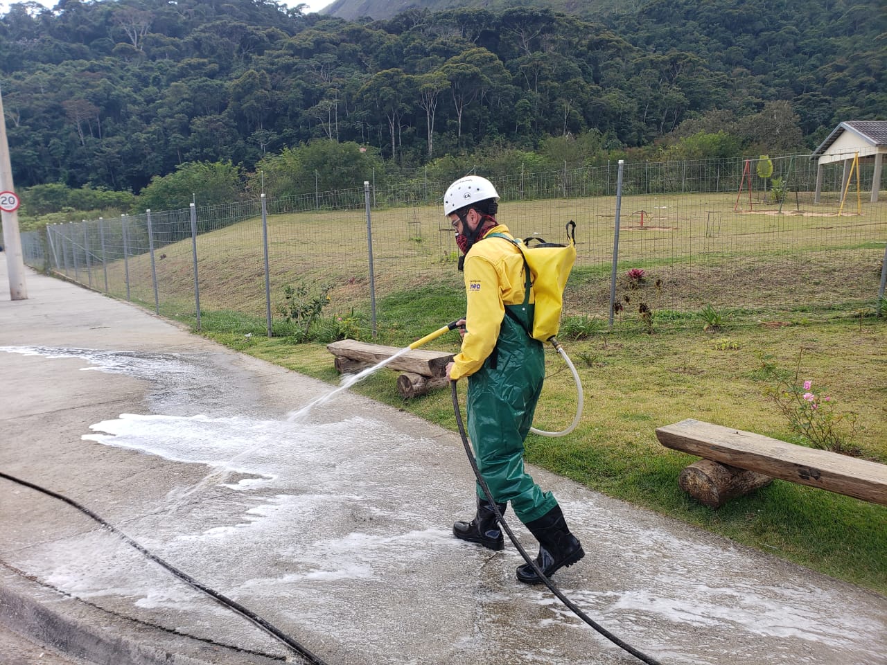 Uma equipe de guarda-parques promoveu a limpeza e a desinfecção na Zona de Amortecimento da unidade de conservação, no Ermitage, em Teresópolis, na Região Serrana do Rio.