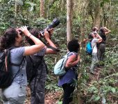 O evento teve início na quinta-feira (13/10), na sede da RDS Aventureiro, com a palestra “Aves da Ilha Grande: ecologia e conservação”, ministrada pelos pesquisadores da UERJ Maria Alice Alves e Rafael Saint Clair. Já na sexta-feira (14/10), os participantes realizaram a Trilha da Longa, na Rebio Praia do Sul, onde foram registradas 34 espécies de aves, com destaque para o pavó (Pyroderus scutatus) e papagaio-moleiro (Amazona farinosa) globalmente ameaçadas de extinção.