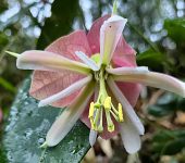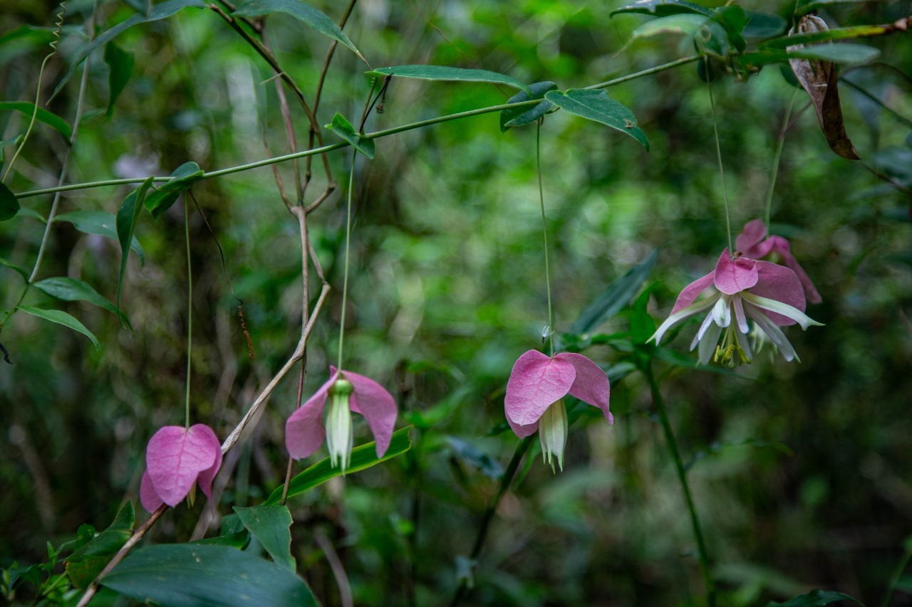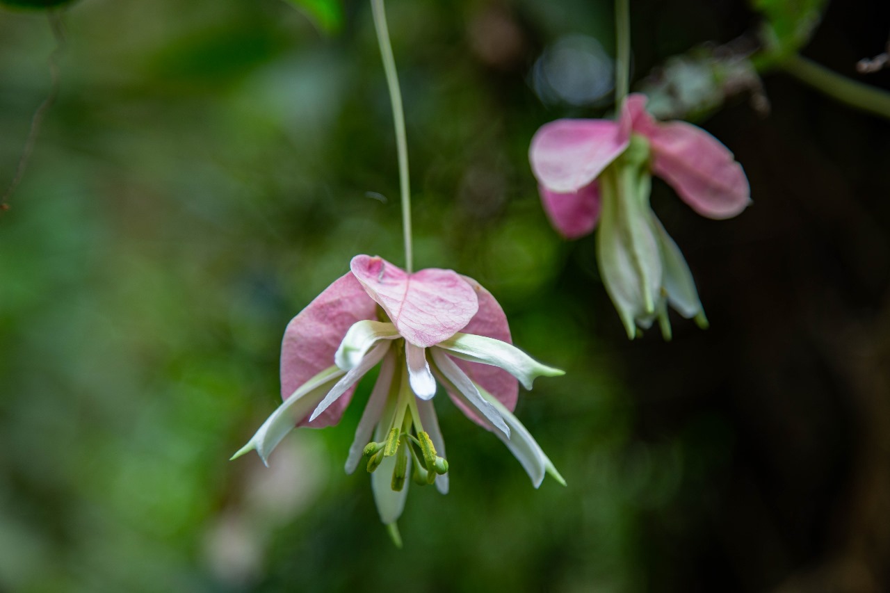 De coloração rosa clara, esta singela flor que parece estar pendurada em um caule é a Passiflora catharinensis (Passifloraceae). A espécie é considerada rara e foi fotografada pelo guarda-parque Rodrigo Freitas nas montanhas do Parque Estadual dos Três Picos, unidade de conservação administrada pelo Instituto Estadual do Ambiente (Inea) e situada na Região Serrana do Rio.